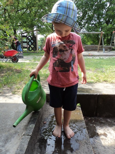 Für Kinder ist es immer ein Vergnügen mit Wasser zu matschen, zu experimentieren, Dämme zu bauen, Behälter zu befüllen, zu gießen, zu spritzen, zu kochen, barfuß durch Wasser zu patschen und vieles mehr.